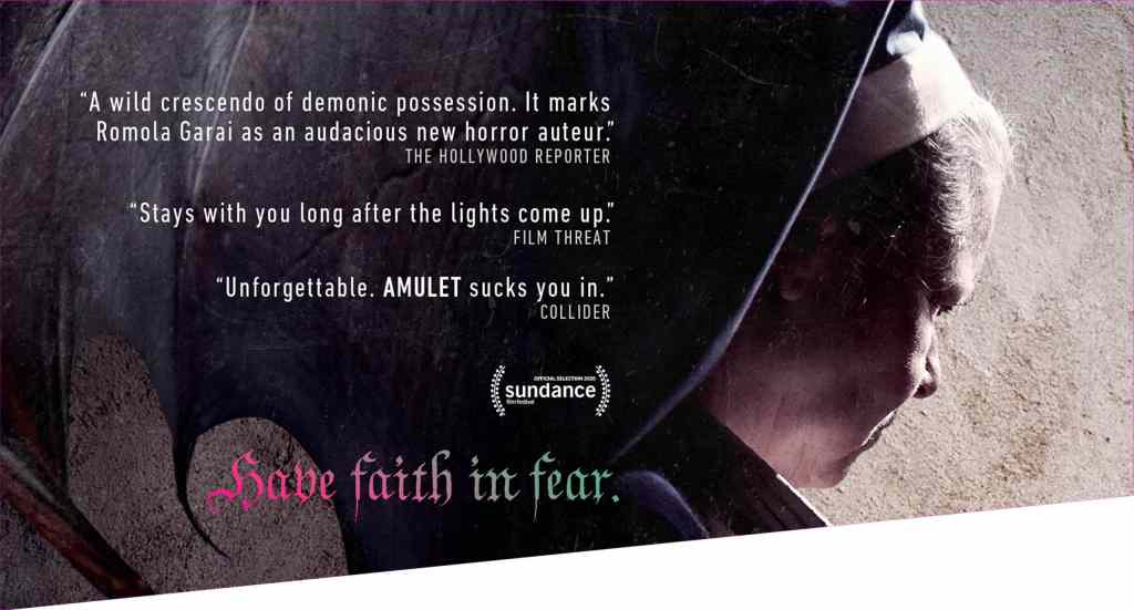 As a novice film critic, I was very diligent in taking a notepad into the screening. It hadn’t occurred to me that I wouldn’t be able to write in the dark, but I did manage to scribble ‘WTF?’ at one point. I’ve been thinking about my ‘WTF?’ moment ever since and want to dive back in at the next opportunity. Make sure you see Amulet at least once, and ideally twice, because it will grip you while you watch it and linger on the mind long after.