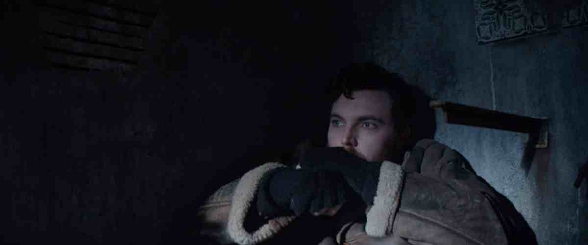 Quickly establishing its genre and backstory, Shepherd hurls you into a host of stylishly eerie scenes: a raucous seacoast, a funeral burial and a wailing female apparition, all shot against the craggy mountainous shoreline. With the introduction of the film’s tone, we also get a snapshot of the lead character’s current mental health. Still suffering after the death of his wife, Eric Black, played by the brooding Tom Hughes, is deep in emotional turmoil, which has spilled out into all areas of his life and stopped it in its tracks. After a fraught goodbye with his mother, he decides to escape life even further and whisks himself and his dog away to the island. Flung into the role of shepherd and general caretaker, with no electricity, and only sporadic outside contact from the local ferry operator, Fisher (Kate Dickie), his mind declines further. Memories of his wife Rachel (Gaia Weiss) stalk his nightmares, while a menacing banshee-like entity haunts his daydreams.