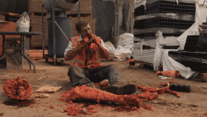 T: You are correct! Standing Woman had its UK premiere at FrightFest which was great, especially as it was the first in person festival we could attend this year. It could not be more different from Zomblog but still treads in the genre with its mix of dystopia and body horror. We’ll be screening in competition at the BAFTA qualifying Leeds International Film Festival in November and have a lot more festivals to come for it.
