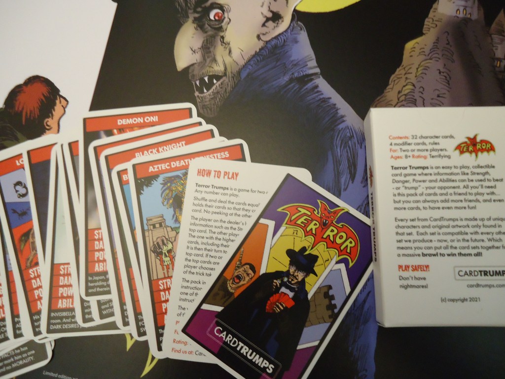 Jae here at Horrified - who’s the Master Vampire, mad professor and general serial-killer-in-chief of these fine internet pages - loved our first sets. We’re doing it all again as I write these words -Terror Trumps Wave 2 launches on Kickstarter on Halloween 2021 and runs through November. We like to hope we’ve captured not only the spirit of the old Horror Trumps but also the looming spectre, the terrifying menace and the jet black soul of them! Come and check us out.
