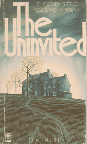 Back in 1979, Clive Harold had published a book called The Uninvited. It had sat on a shelf in the house I grew up in. I have no idea what became of it and haven’t seen that particular copy of (or any copy) for decades. But on seeing the name Clive Harold in the BBC article, I could picture the front cover of that book with absolute clarity as if I had it right in front of me. Indeed, the image sprang into my mind automatically and without effort: a dreary grey sky, a drab terrain of blown grass with a path or trail snaking across it, a line of leafless trees, a forlorn farmhouse with dark windows standing on an abrupt horizon, an atmosphere of loneliness and bleakness and unspecified threat. I saw all that in my mind’s eyes, and I even saw the strapline too: This story is true. You’ll wish it wasn’t.